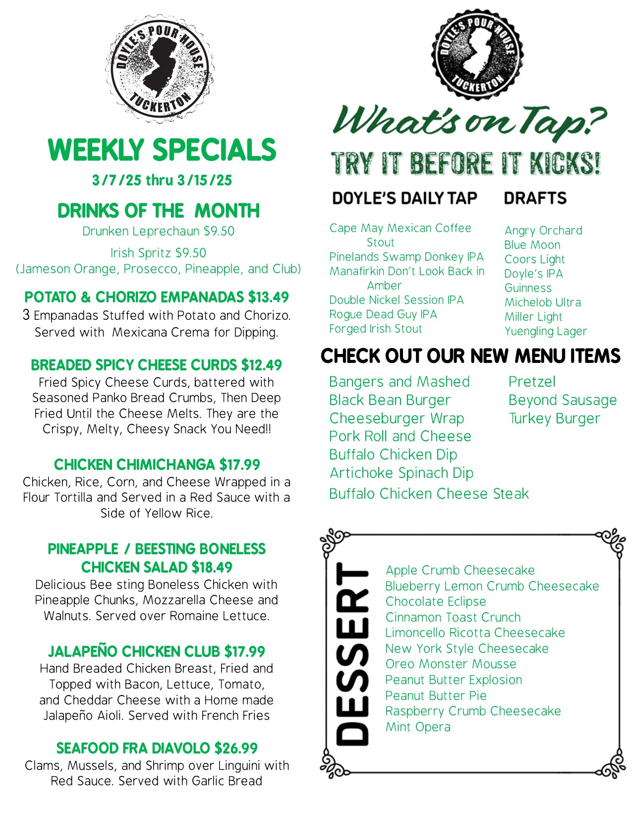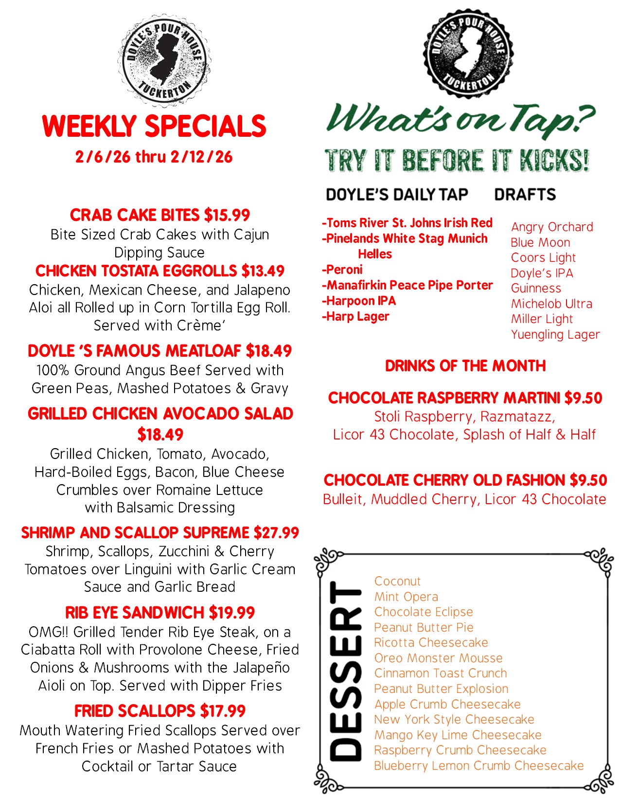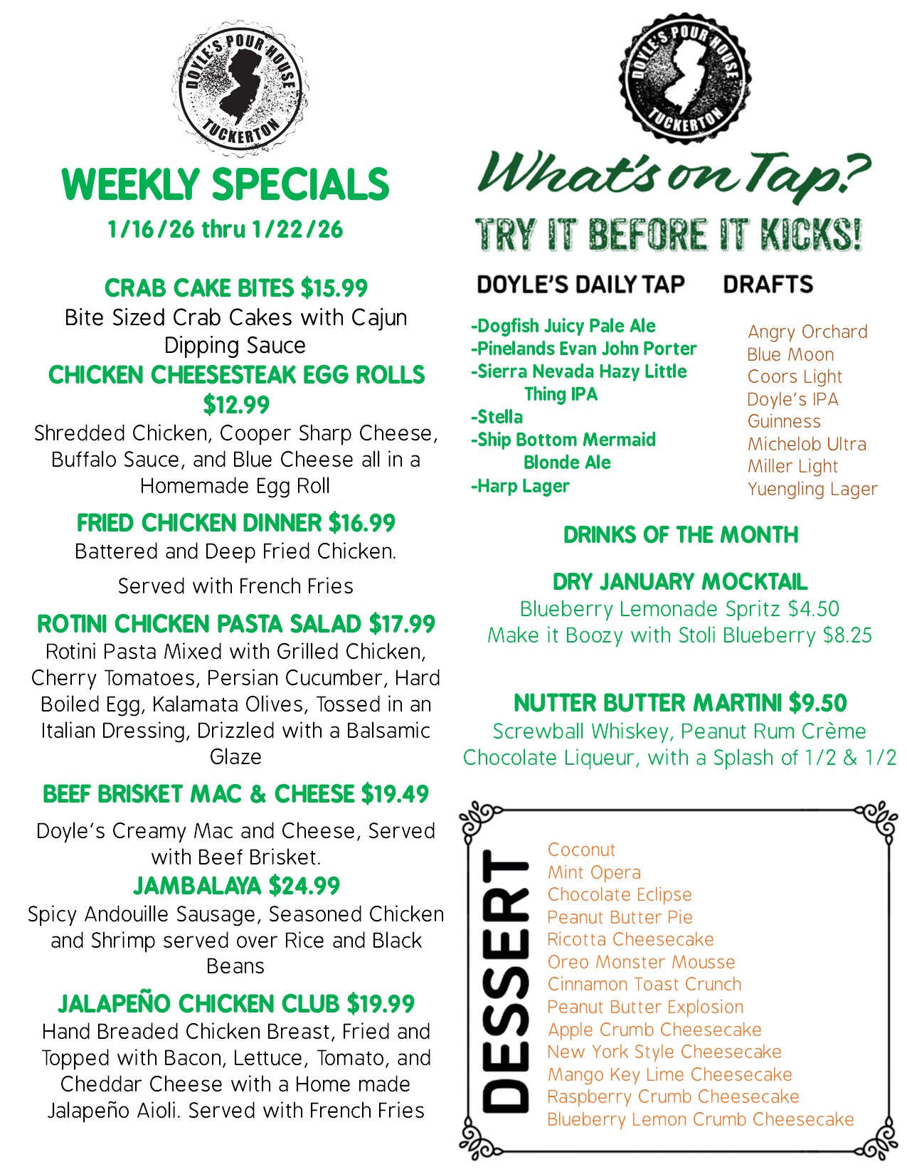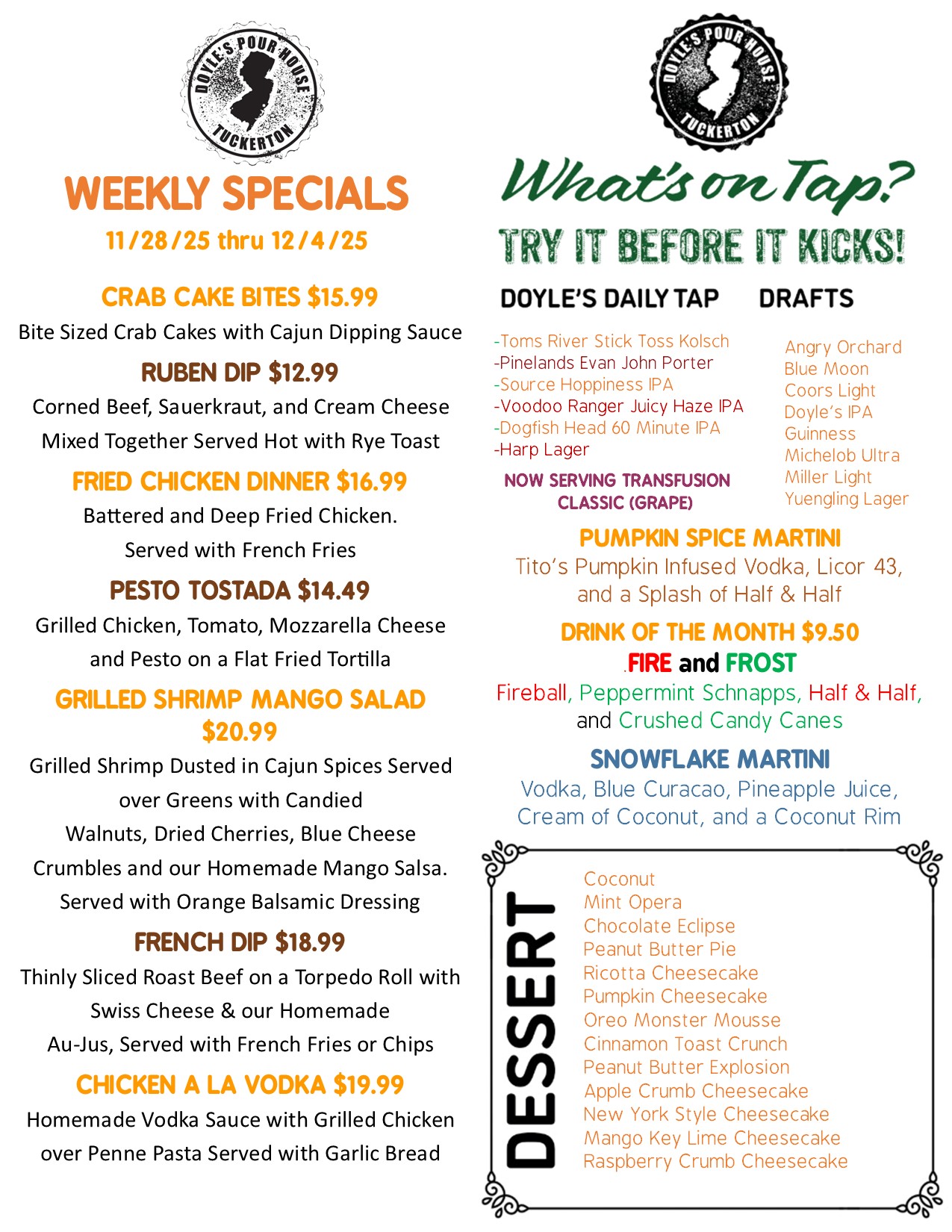 Tuckerton Location Monday through Friday from 4PM - 7PM